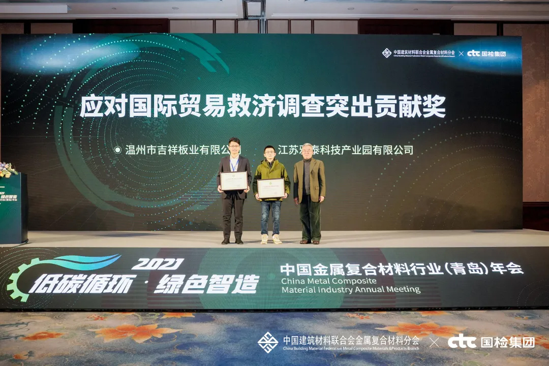 會(huì)上,對(duì)2021年度行業(yè)優(yōu)秀的產(chǎn)品與企業(yè)進(jìn)行了表彰頒獎(jiǎng)——雅泰 YARET 牌鋁塑復(fù)合板,于2018年至2021年期間經(jīng)中國(guó)建材檢驗(yàn)認(rèn)證集團(tuán)股份有限公司抽樣全項(xiàng)檢測(cè),產(chǎn)品質(zhì)量符合中華人民共和國(guó)國(guó)家標(biāo)準(zhǔn)(GB/T 17748-2016),榮獲2021年度CTC認(rèn)證產(chǎn)品合格證。