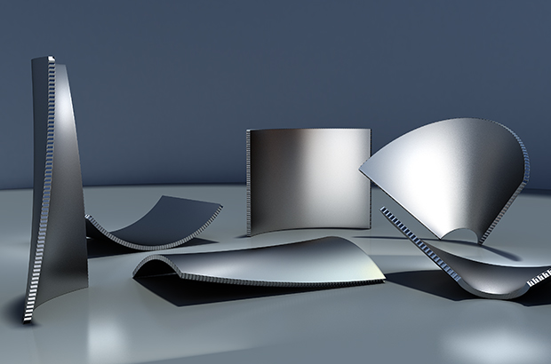 雅泰通過各種技術攻關,解決雙曲鋁蜂窩板雙扭曲問題,形成了一整套的無折痕鋁蜂窩板的加工成型技術,實現雙曲鋁蜂窩板的工業(yè)化生產。